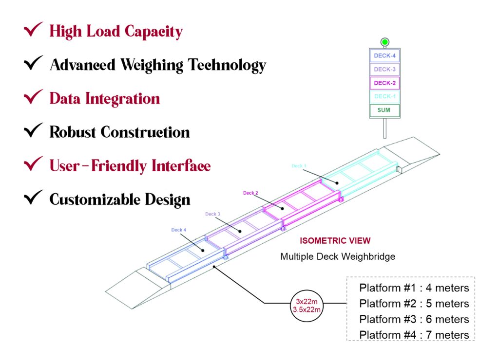 Multi-Axle Weighing: Simultaneously measures the weight of each axle or vehicle section. Capable of handling weights